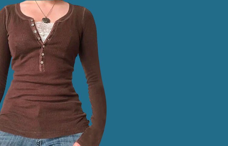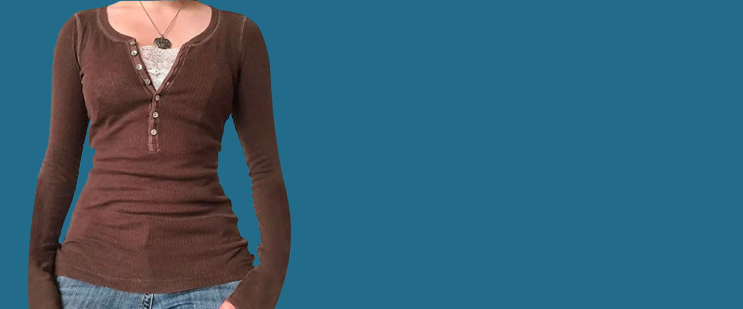 Retro Grunge T-Shirt – V-Ausschnitt & Strickoptik Damen