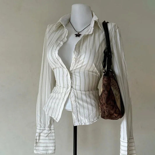 Y2K Damenhemd – Sommermode mit Streak-Druck & Knöpfen