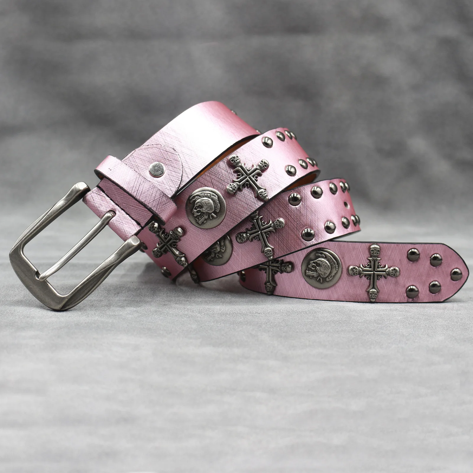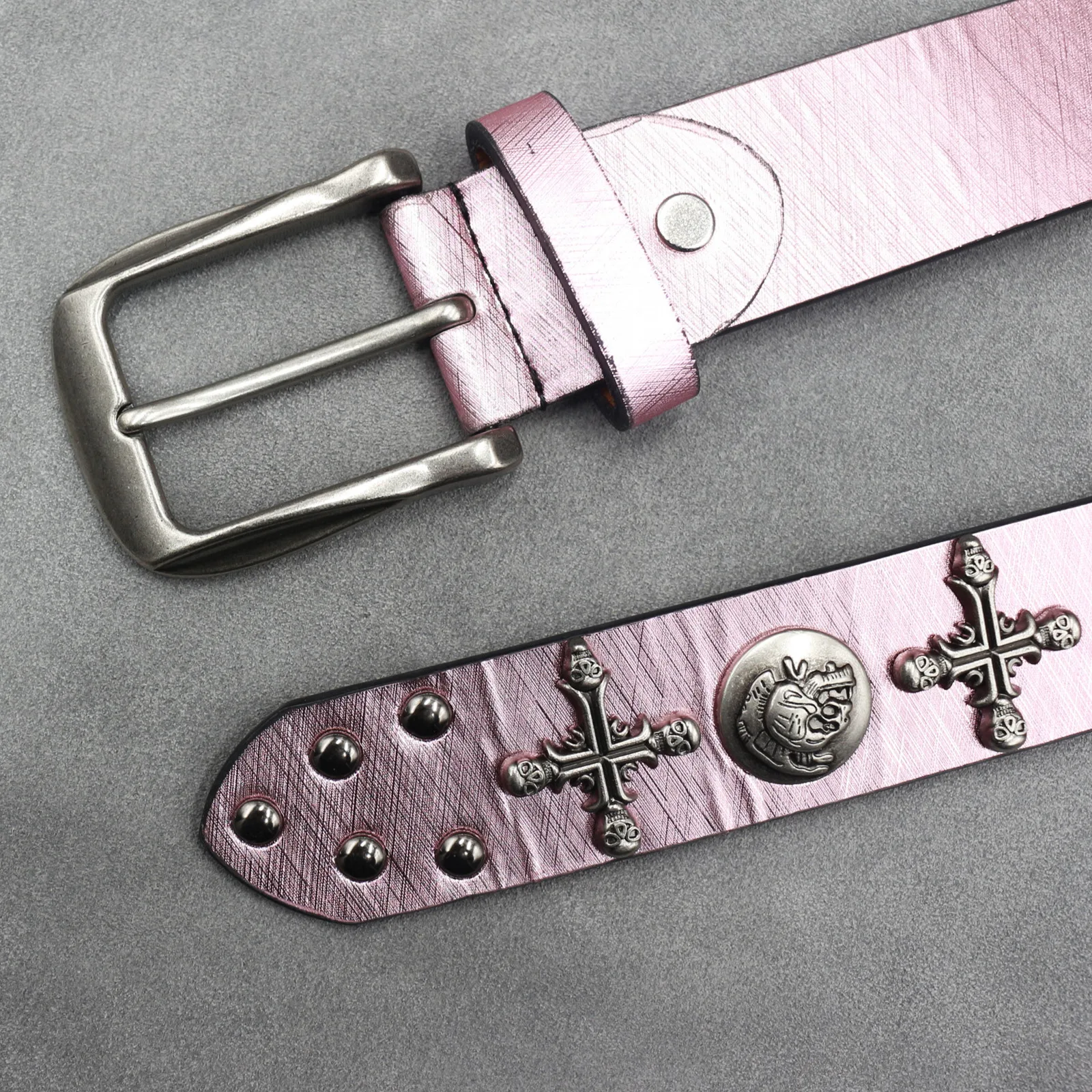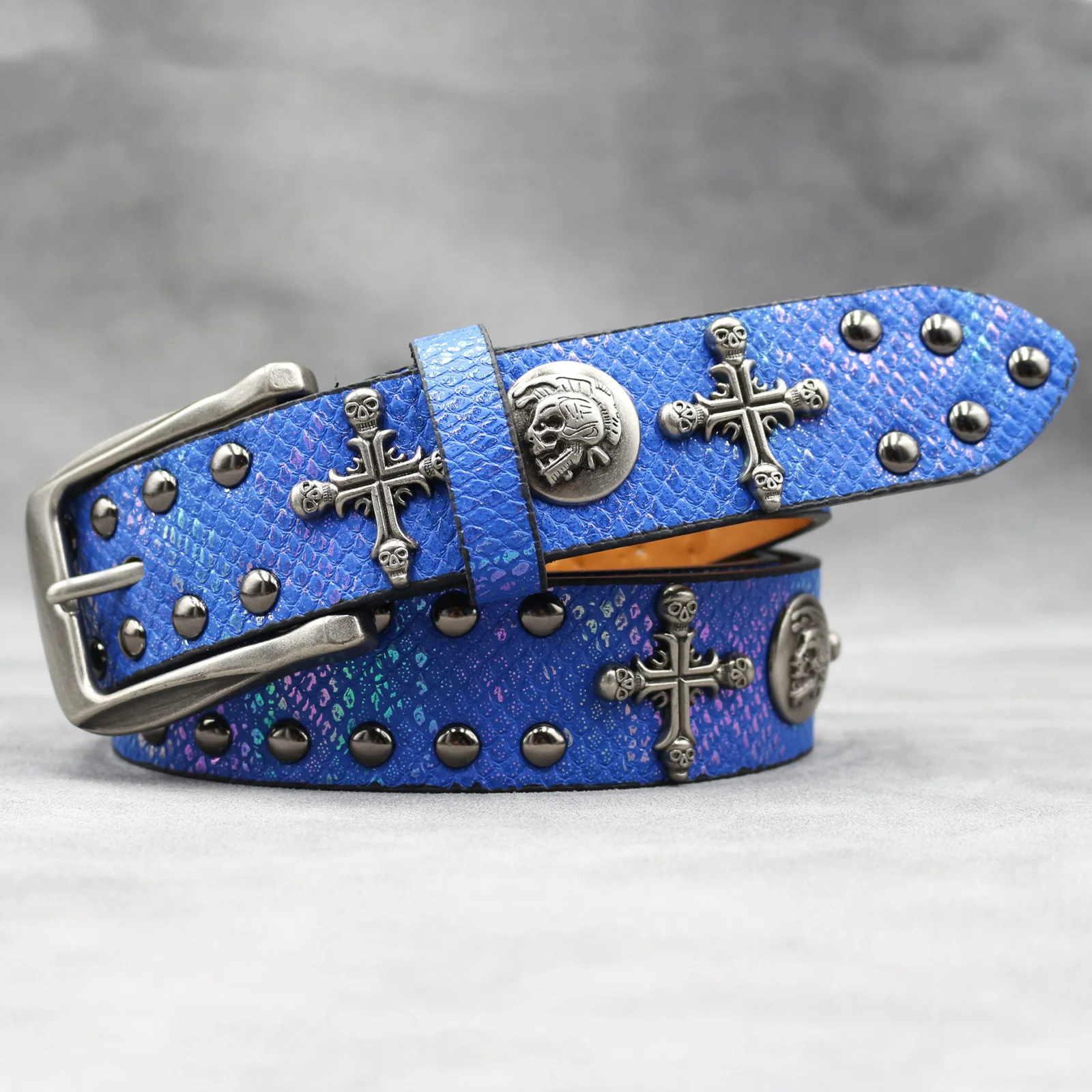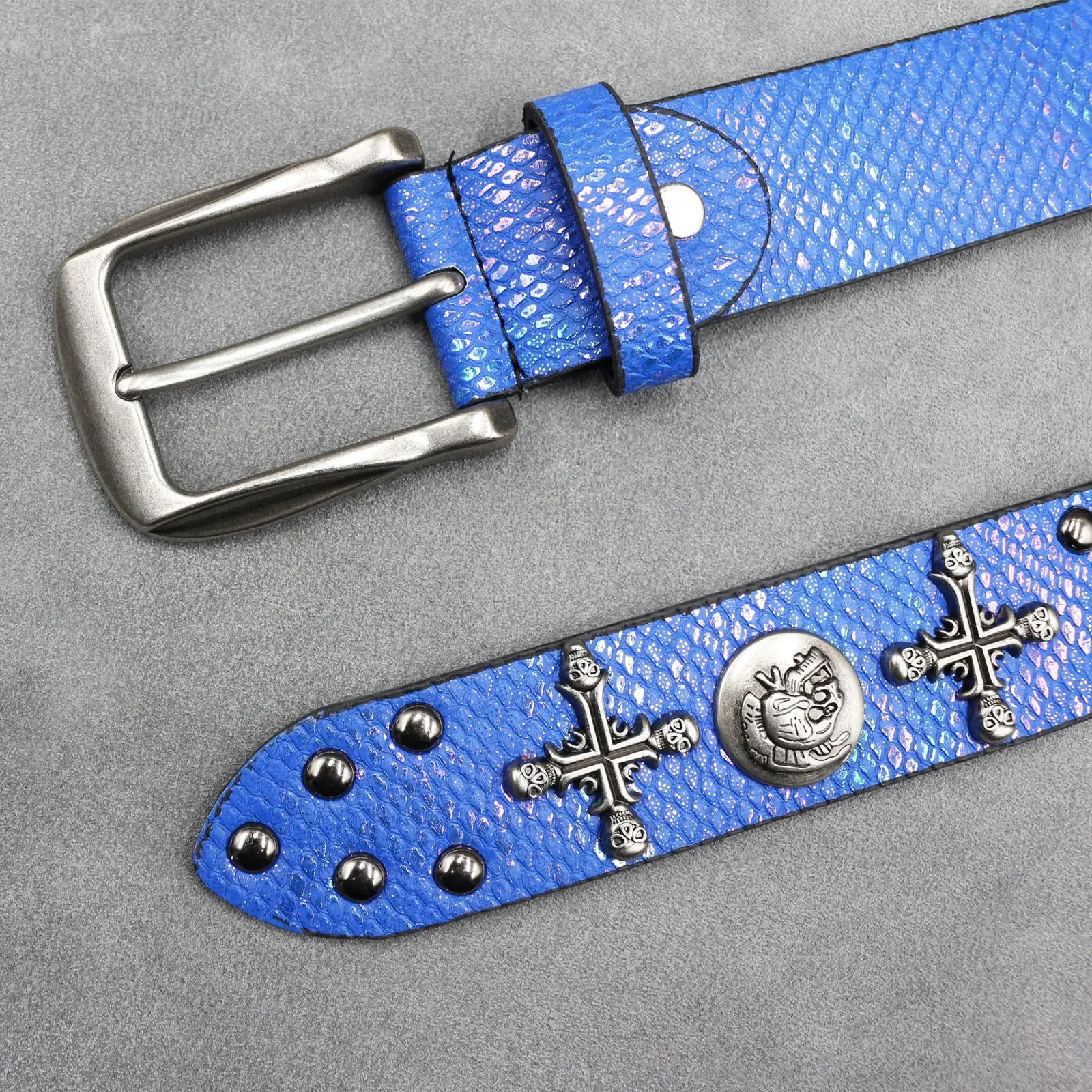 Dieser Gürtel verfügt über ein originelles Design mit einem einzigartigen 7-Farben-Kreuz- und Totenkopfmotiv und ist somit ein herausragendes Accessoire für jedes Outfit.